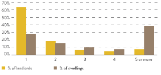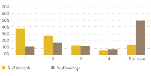Een meerderheid van de Britse huisbazen heeft slechts één woning in zijn portefeuille. In Nederland gaat het dan om 40% van de verhuurders. Echter, ook in Nederland heeft een meerderheid slechts een of twee huurwoningen in zijn portefeuille. Trouwens, de Britten doen het sowieso wat rustiger aan dan de Nederlanders. Ongeveer 60% van de markt is in handen van verhuurders met maximaal vier panden in portefeuille. In Nederland is dat percentage 50%, terwijl de andere 50% vijf of meer huizen in portefeuille heeft.Figuur 3 Omvang portefeuille van Britse verhuurders